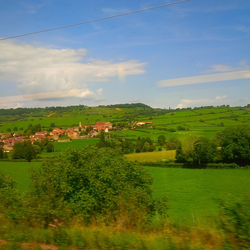ミラノを出た列車はトリノを過ぎ、バルドネッキア駅がイタリアとフランスの国境駅。そこから回りの景色がどんどんフランスらしくなり、牧歌的な風景が続きます。表示もイタリア語からフランス語に変わっているので、あぁフランスに入ったのだなと分かるぐらい。 |